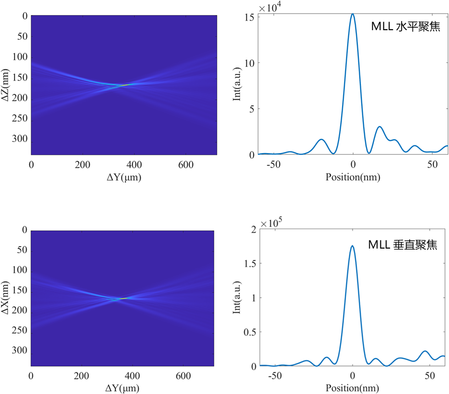 硬X射线纳米探针线站:HEPS研制多层膜劳埃透镜的水平、垂直聚焦散焦图(第三次现场测试数据),水平聚焦半高宽10.5nm,垂直聚焦半高宽12.6nm。