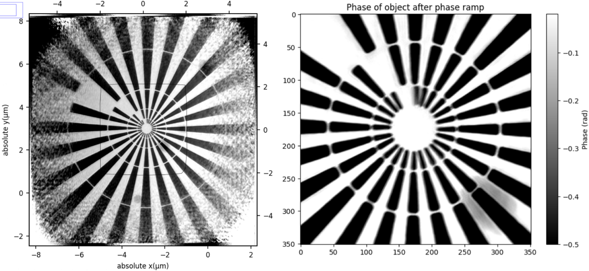 硬X射线相干散射线站:ptychography重建图像最内层条纹宽度30nm,重建像素尺寸6.9nm,分辨率约9.5nm